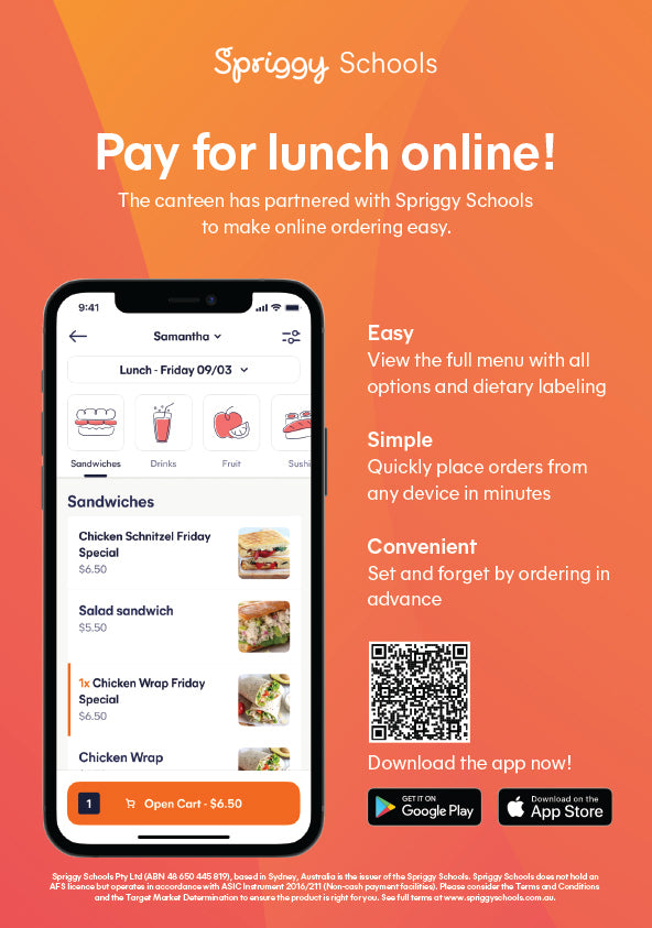 We are excited to introduce our partnership with Spriggy Schools for a seamless canteen ordering experience.